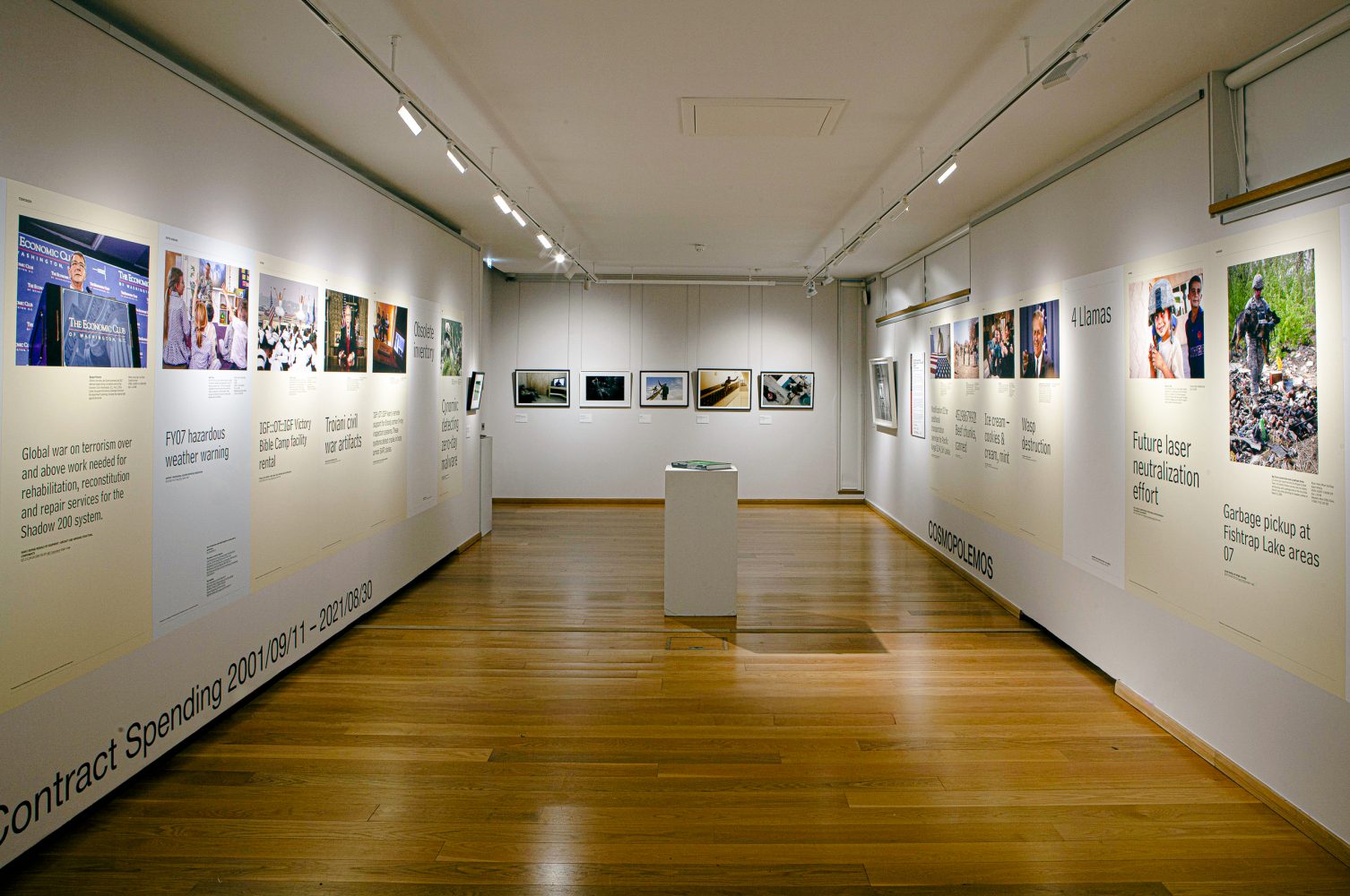 Cosmopolemos is an exploration of knowledge and meaning in relation to an overwhelming edifice of power: the $6.5 trillion worth of contracts issued by the US Defense Department to the private sector between the 9/11 attacks and the American withdrawal from Afghanistan 20 years later. The items accounted for between these two iconic events encompass every aspect of life and death, from oil reserves and nuclear weapons to cookies and cleaning services: over 43 million recorded transactions, with contractors large and small.
